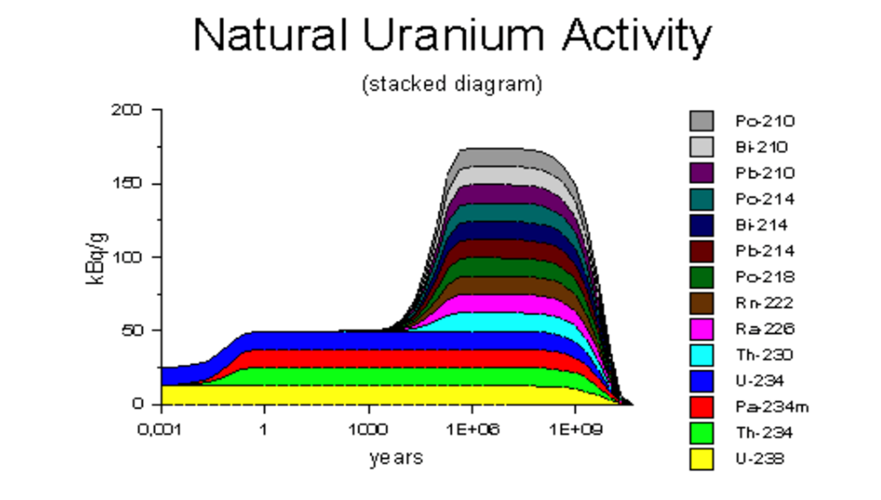 Die Strahlenschutzverordnung nennt noch ein zusätzliches Kriterium für NORM, welches erfüllt sein muss: Die Zerfalls- oder Umwandlungs- produkte des Urans müssen im Gleichgewicht sein.