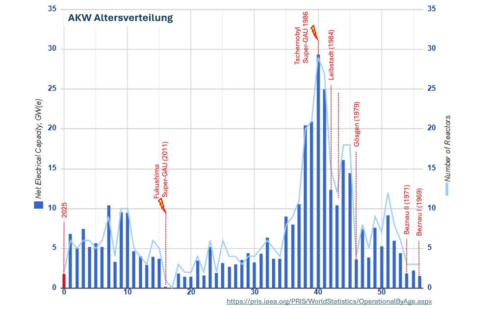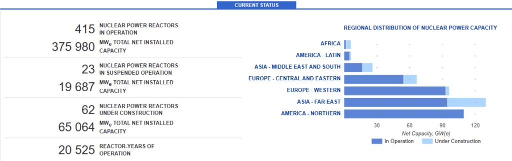 Der Nukleare Zwischenstand zu Jahresende 2025: Die Daten stammen aus der IAEA Publikation https://www-pub.iaea.org/MTCD/Publications/PDF/RDS-2-45_web.pdf und ab der Homepage https://pris.iaea.org/PRIS/home.aspx.